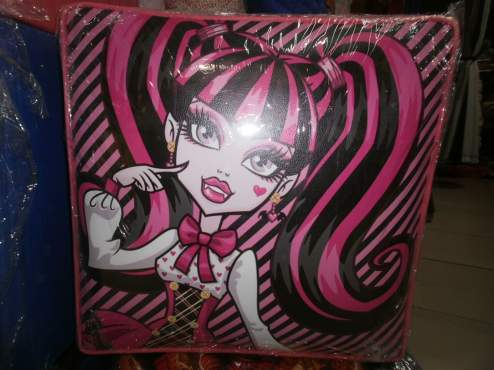 Cubos con estructura de madera, forrados en cuerina, con impresiones varias, en 40 x 40 cms. Con cara superior acolchada.